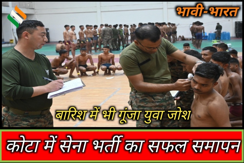 बीबीएन, नेटवर्क। राजस्थान की तीसरी सेना भर्ती रैली का कोटा में गुरुवार को सफल समापन हुआ। महाराव उम्मेद सिंह स्टेडियम, नयापुरा में 30 अक्टूबर से 6 नवंबर तक चली इस रैली में राज्य के 17 जिलों ब्यावर, भीलवाड़ा, बूंदी, बांसवाड़ा, बारां, चित्तौड़गढ़, डूंगरपुर, दौसा, झालावाड़, करौली, कोटा, पाली, प्रतापगढ़, राजसमंद, सलूम्बर, सवाई माधोपुर, टोंक और उदयपुर के हजारों युवाओं ने उत्साहपूर्वक भाग लिया।
