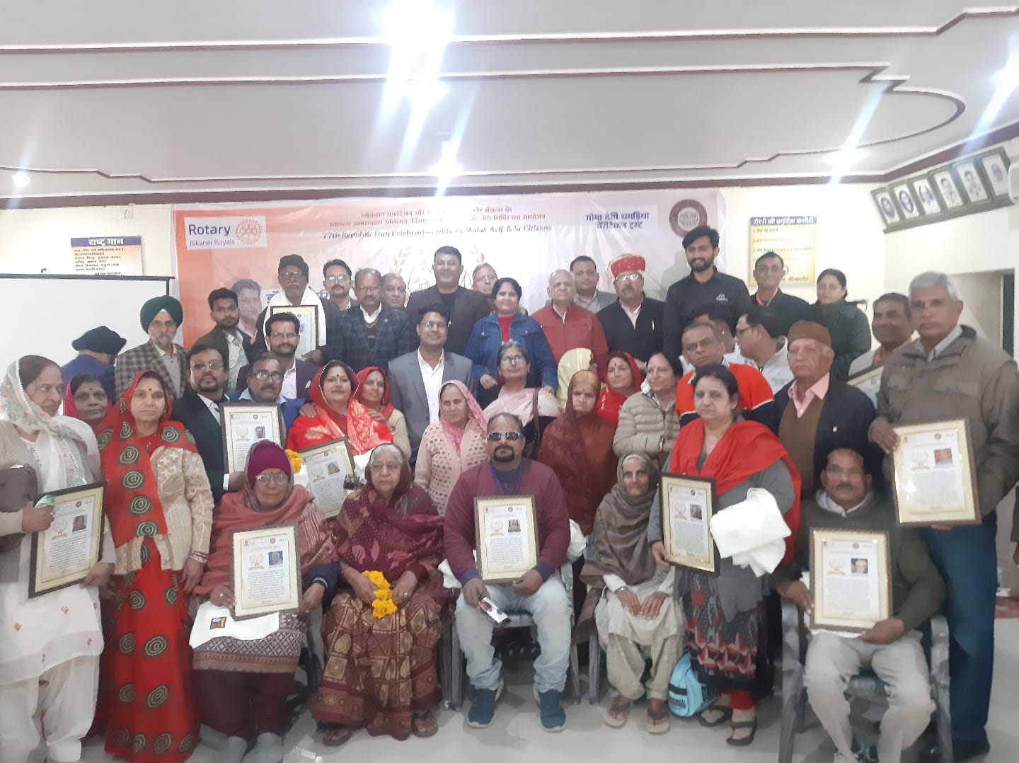 बीबीएन, बीकानेर | वरिष्ठ नागरिकों के सम्मान और स्वास्थ्य जागरूकता को समर्पित एक व्यापक कार्यक्रम रविवार को बीकानेर में आयोजित किया गया। लोकराग फाउंडेशन, रोटरी रॉयल्स, गोमादेवी चैरिटेबल ट्रस्ट एवं अस्थि रोग विशेषज्ञ डॉ. मोहम्मद आरिफ की संयुक्त पहल से रोटरी क्लब सभागार में वरिष्ठ नागरिक सम्मान समारोह एवं जोड़ रोग जागरूकता शिविर का आयोजन हुआ। कार्यक्रम के दौरान 160 से अधिक बुजुर्गों की निःशुल्क बीएमडी (बोन मिनरल डेंसिटी) जांच की गई, वहीं 100 वरिष्ठ नागरिकों को सम्मानित किया गया।