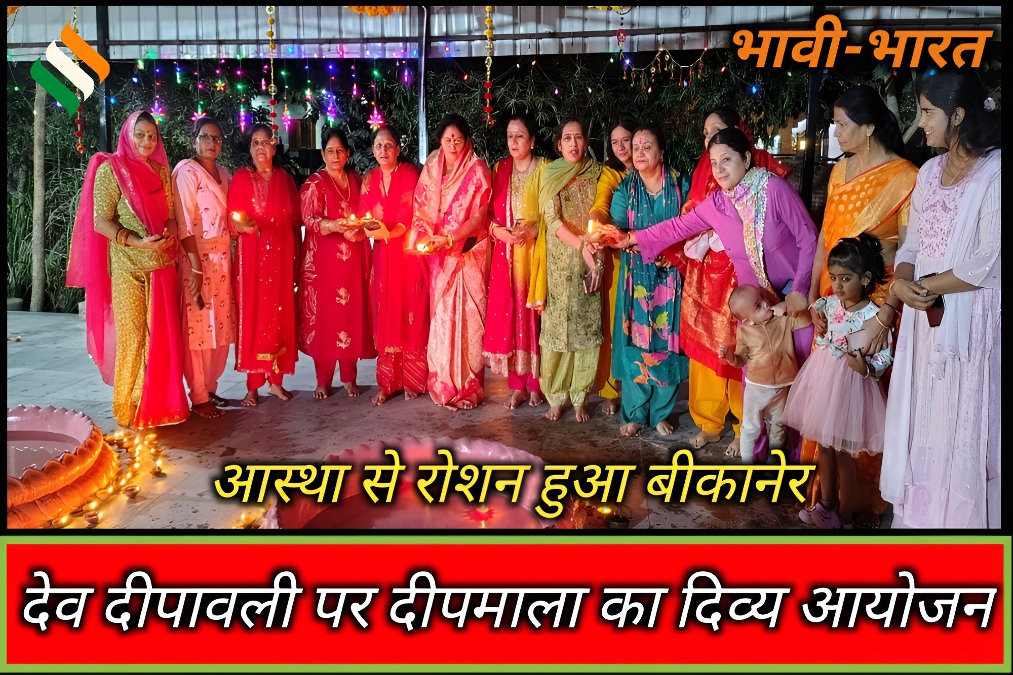 बीबीएन,बीकानेर। कार्तिक पूर्णिमा और देव दीपावली के पावन अवसर पर रविवार की शाम बीकानेर का महाराणा प्रताप पार्क भक्ति और प्रकाश से आलोकित हो उठा। जय नारायण व्यास कॉलोनी की महिलाओं ने सामूहिक रूप से 1001 दीप प्रज्ज्वलित कर गंगा आरती का भव्य आयोजन किया। दीपों की जगमगाहट और आरती की मधुर ध्वनि से पूरा वातावरण श्रद्धा और आनंद से भर गया।