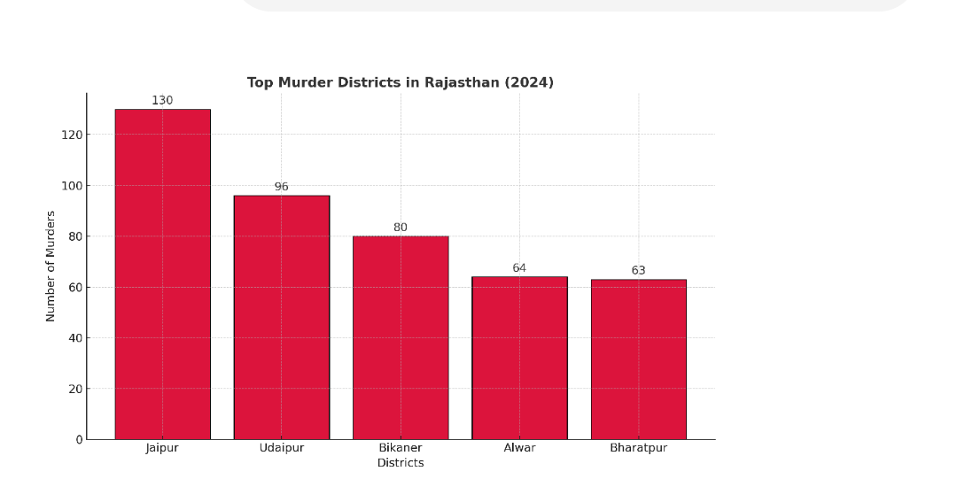 सबसे ज़्यादा हत्याएं जयपुर में ,130, फिर उदयपुर (96), बीकानेर (80), अलवर (64) और भरतपुर (63) में। यानी शहर जितना बड़ा, खून उतना ज्यादा।