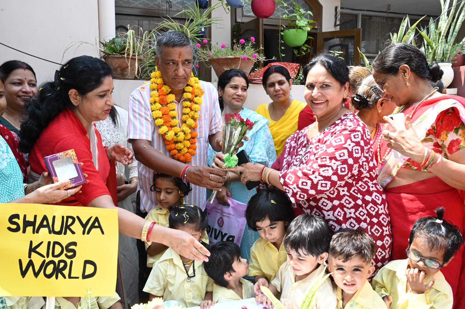 कार्यक्रम के दौरान महिला समूह की ओर से गुप्ता को माल्यार्पण किया गया और उन्हें श्रीकृष्ण-राधा की तस्वीर भेंट की गई। वहीं स्कूल के नन्हे-मुन्ने बच्चों ने केक काटकर उत्सव का माहौल बना दिया।