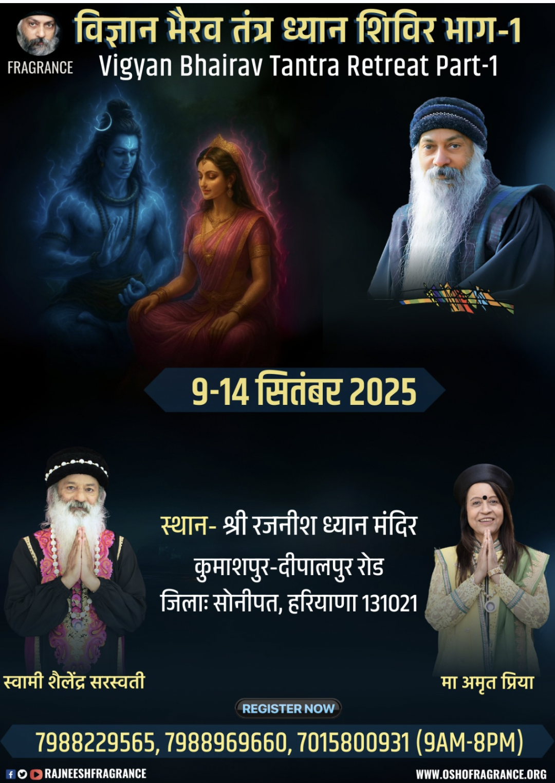 यह शिविर श्री रजनीश ध्यान मंदिर, कुमारपुर-दीपालपुर रोड, जिला सोनीपत (हरियाणा) में सम्पन्न होगा।
